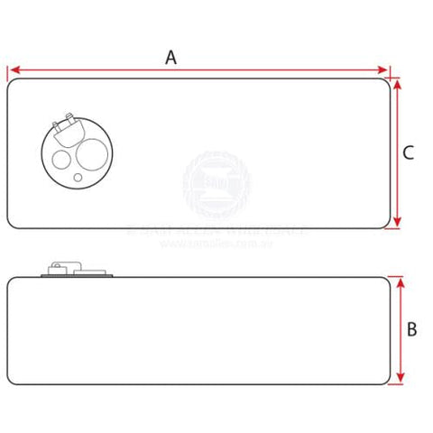 Removable inspection port hole, vented cap, stepped 3/4" - 5/8" tail for external breather, 10mm tail for fuel hose, blank 1/4" BSP terminal for a second fuel pickup or diesel return and provision for a 5 hole fuel sender or mechanical gauge.