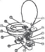 Corrosion resistant materials are used throughout the toilet for reliable service with salt water. All fastenings face towards the front or top of toilet for ease of maintenance.