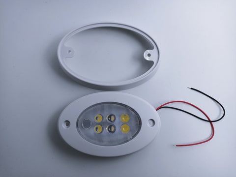 A surface mount oval shaped LED light with 6 x warm white LED’s.