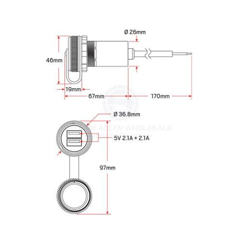 • Supplied with water resistant rubber cap (cap must be securely locked to be waterproof).